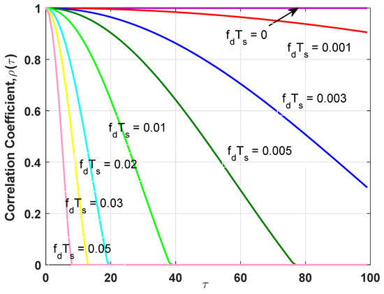 where is defined by the th-order Bessel function of the first kind [24], is the maximal Doppler shift of the CR user, is the sampling interval, and is the time interval.