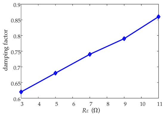 The simulated relationship between the damping factor and RE.