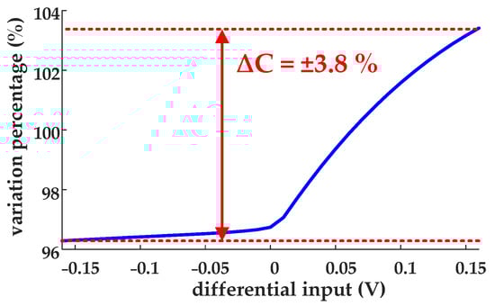 As shown in Figure 15 and Figure 16, the variations of the total parasitic capacitance in the following error amplifier (the sum of CGS1 and CGB1) which caused by differential input voltage, process and temperature are smaller than 3.8% and 1.7%, respectively. The PVT variation of the parasitic capacitors is too small to affect the DCOC loop; hence, the PVT variation of the parasitic capacitors can be considered acceptable.