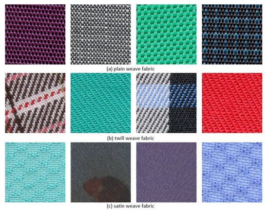 Fabric is one of the vintage inventions of human beings [], which has evolved from handmade woven textiles to the modern machine-based electronic textiles. In the textile manufacturing industry, weave pattern, which is the most important factor for woven fabrics, plays a significant role in design and redesign, textural analysis due to its structure, and appearance of fabrics [,,,]. It is essential to perform recognition of woven fabric pattern before it is processed further by weaving machines, in the manufacturing process. Presently, typically, woven fabric pattern recognition is dependent on manual operations using human eyes aided with equipment such as a microscope or a magnifying glass. Traditionally, this manual inspection is performed by an expert who requires expertise and experience. However, it is accompanied with several drawbacks such as extensive labor, inefficiency, and time-consuming, but also leads to subjective human factors, such as mental and physical stress, dizziness, and tiredness, etc., which ultimately affects the recognition results. Therefore, it is indispensable to develop an automated inspection system for the recognition of woven fabric patterns to produce high-quality products that meet the needs of customers.