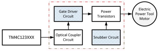 Figure 13 demonstrates the function block diagram of the system hardware architecture designed in this paper that was implemented for the power tool with both a Hall-effect position sensor control and a sensorless control.