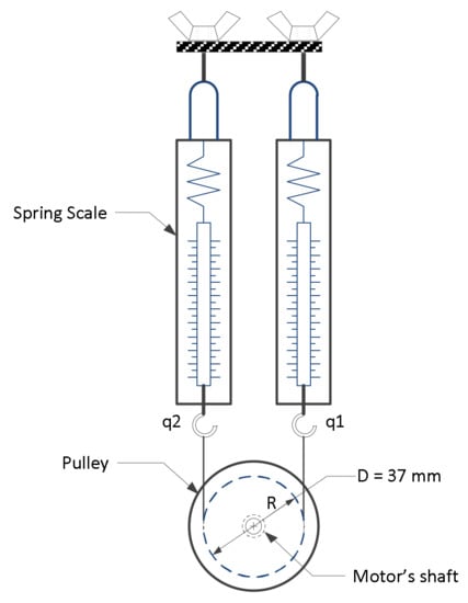 In order to test the motor under load conditions, a spring-scale or newton meter system was built, as shown in Figure 15. The load torque could be calculated as Equation (11) [5],