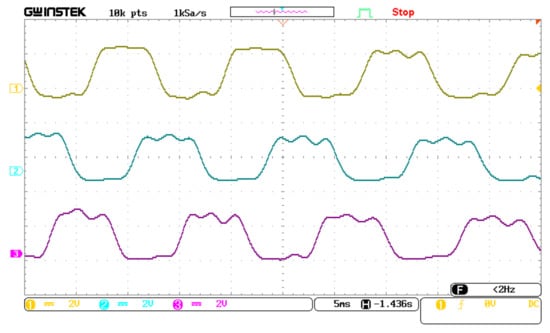Figure 20 shows the BEMF trapezoidal waveforms of the power tool. Ch1, Ch2, and Ch3 represent the BEMF waveforms of the A-phase, B-phase, and C-phase, respectively.