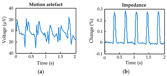 (a) Measurement of the motion artifact; (b) Real part of the electrode impedance at 16 Hz.
