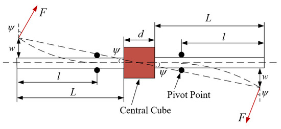 Since one end of the right part of the spring bar is fixed on the central cube and the other end is subjected to concentrated load, and there is a movable contact force pivot point between the sliding clamp and the spring bar, the structure of the spring bar is a cantilever beam at this time. According to material mechanics, the maximum deflection of the free end of a cantilever beam can be obtained by superposition principle.