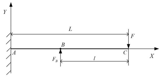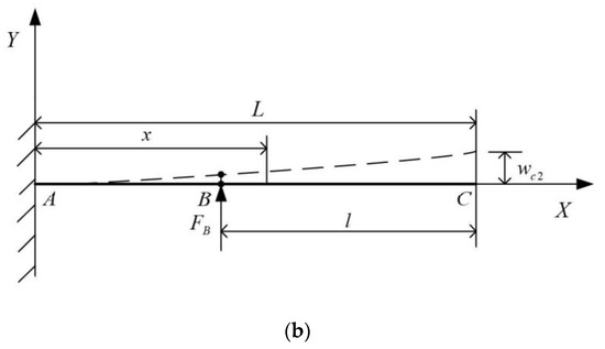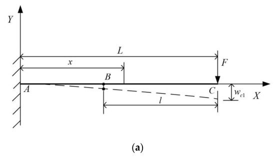 For the cantilever beam in Figure 6b, when , the deflection at the right end C of the cantilever beam is as follows: