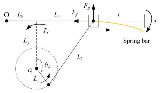 In Figure 7, is the distance between the gear shaft and the joint center point O along the slideway direction, is the distance between the contact force pivot point B and the reference point A, effective length is the distance between rightmost point C of the spring bar and the contact force pivot point B, and is the angle between connecting rod and slideway.