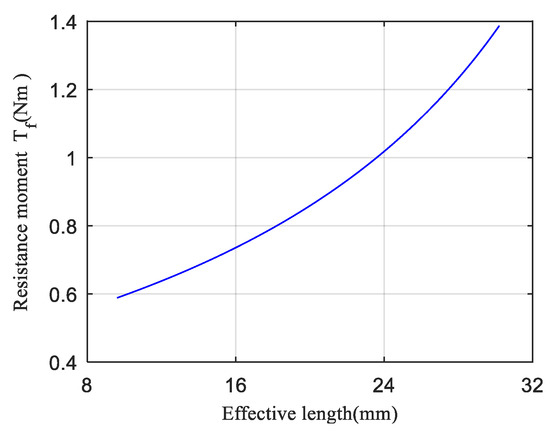 Considering the friction between sliding clamp and spring bar, when the sliding clamp slides on the spring bar, the elastic deformation of the spring bar will increase the resistance to sliding. To overcome the resistance, it is necessary to increase the driving torque of the stiffness adjustment motor. The resistance moment formed by the resistance to the stiffness adjustment motor is shown in Figure 11.