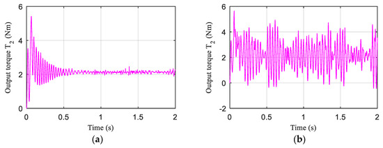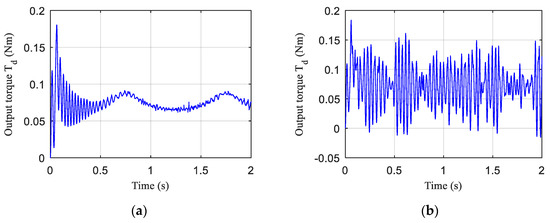 As can be seen from Figure 16 that the output torque of the joint increases from 0 until it eventually stabilizes, but the whole process shows great fluctuation. The lower the stiffness, the greater the fluctuation of the output torque.
