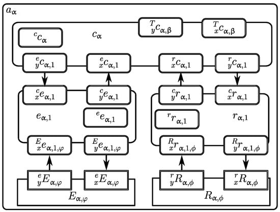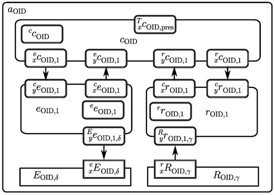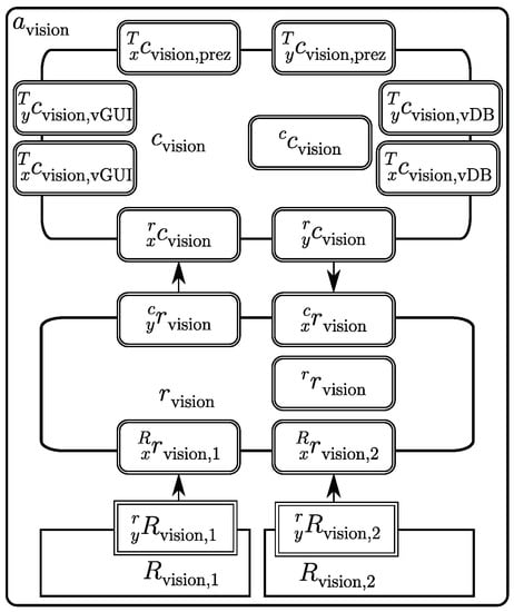 It should be noted that throughout the paper a consistent method of assigning symbols to the elements of the system structure is used. The central symbol, i.e., , , , , , , describes the type of subsystem, while the right subscripts assign a particular names in the order: name of the agent, name of the subsystem, thus it is easy to identify what is the type of the subsystem and what is the agent that it belongs as well as what is the particular name of the subsystem.