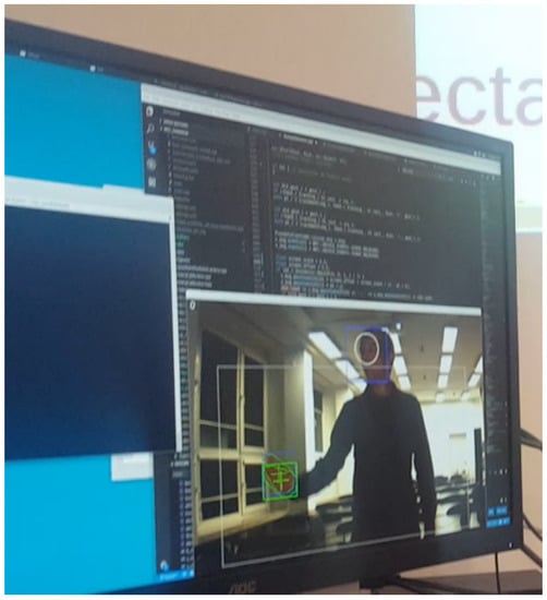 Another test was the usability test. The whole system was configured in a new (non-laboratory) environment and we conducted operational tests. Figure 36 shows the visual feedback window that was used during tests, Figure 37—the camera arrangement and Figure 2—the operator performing smart visualisation control.