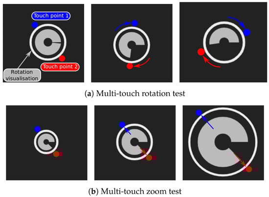 Figure 38 shows the tests pertaining to the response to the events caused by a touch screen: rotation and zoom. Verification of the keyboard events execution was conducted by execution of browser shortcuts and custom system shortcut to lock the screen. In addition, the interface allows to log in after the screen lock. For safety reasons, the operating system requires typing a passphrase to unlock the screen. Therefore, the multi-modal interface was configured to imitate typing the password on a voice command spoken by an authorised speaker.
