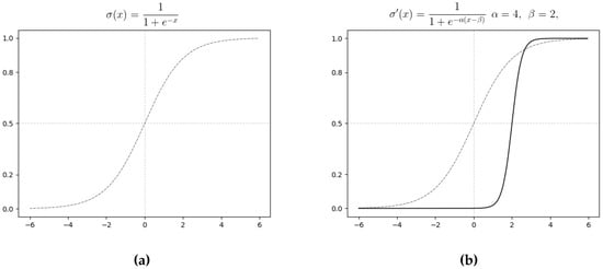 (a) Standard logistic function plot. (b) Generalized logistic function plot using parameters and .