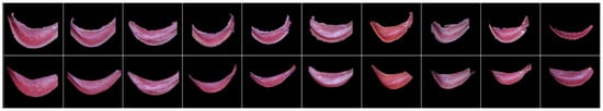 Each picture underwent a manual selection process, isolating and cropping regions of palpebral and forniceal conjunctiva, as shown in Figure 10. This step is needed to compare the manually segmented images considered as the ground truth with the automatic segmentation output from the proposed model. We evaluated both spatial and color properties of regions of interest by assessing the most suitable metrics based on this specific medical image segmentation problem [49]. F1 (FMS1), also known as the Sørensen–Dice coefficient, is the harmonic mean of precision and recall, defined as follows for binary segmentation applications: