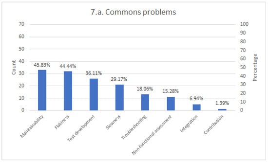 The last part of the survey contains open-ended questions about the participants’ experience with Selenium. We ask them to use their own words (in English) using a text area to answer these questions. First, we ask about the common problems related to the development and operation with Selenium. This question aims to discover the main issues that Selenium testers face, such as maintainability or flakiness, among other potential problems. To conclude, this survey contains another open-ended question to report personal opinions or further comments about the Selenium ecosystem.