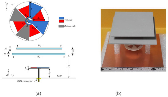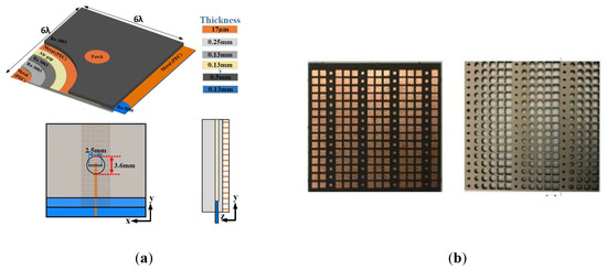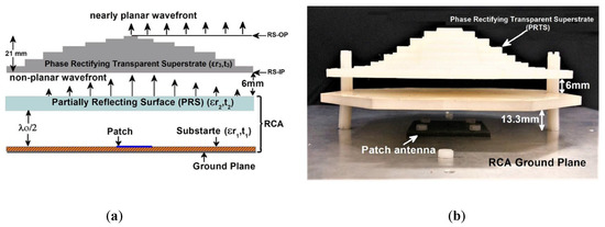 Configuration of a wideband RCA with a PRS of sharp resonance: (a) Entire geometry; (b) Fabricated structure [67].