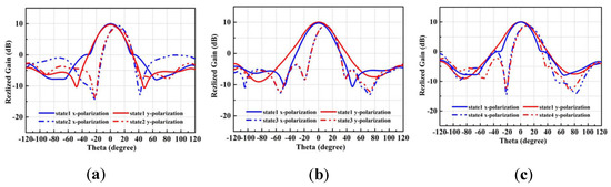 Radiation patterns of the RCA structure reported in [140] at three different planes: (a) 0°; (b) 45°; (c) 90°.