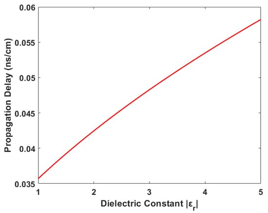 Figure 3 shows the dielectric loss for the three types of substrates that are used in this article. The microstrip propagation delay tpd is a function of a substrate dielectric constant εr and can be given by: