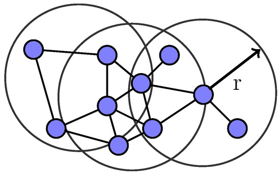 The network topology investigated in this study is similar to [36], which is based on spatial random node distributions and presumed short-range wireless connectivity between the nodes shown in Figure 1. Nodes (N) are assumed to be randomly placed in an area/region (A) where . A constant node density (the expected number of nodes per region unit) is defined as . In our case, a requestor propagates queries to workers whom it discovers. When receiving the queries, a worker answers the queries and replies to the requestor. Moreover, the worker is able to forward tasks (in effect, the queries) to others. This process might continue with the subsequent peers. We assume that a node can act as both a requestor and a worker in this network model. During the propagation process, time-to-live values are defined to limit the lifetime of queries so that the action of forwarding queries to others would eventually be stopped and the responses returned along the path through which the queries were propagated. Each subsection which follows is structured as follows: for each algorithm, we present the idea, the algorithm’s pseudo-code and an analysis of the algorithm.
