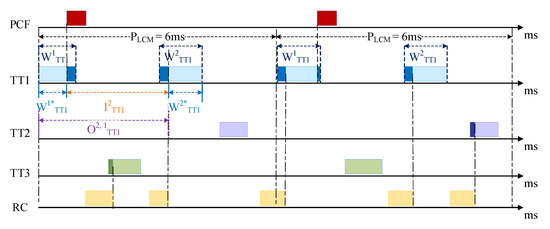 - Moy, M.; Altisen, K. Arrival curves for real-time calculus: The causality problem and its solutions. In Proceedings of the International Conference on Tools and Algorithms for the Construction and Analysis of Systems, Paphos, Cyprus, 20–29 March 2010; Springer: Berlin, Germany, 2010; pp. 358–372. [Google Scholar]