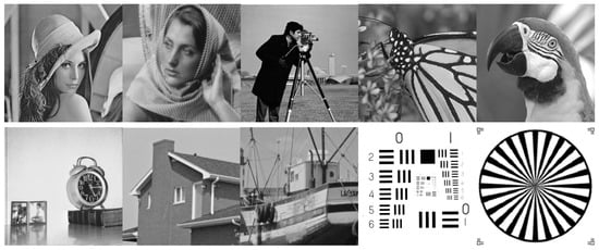 The improved algorithm is compared with the other CS algorithms by evaluating the reconstructed performance on ten standard natural images with size , which are from the university of southern California image library. The original images are shown in Figure 2. In general, we quantify the reconstruction quality in terms of PSNR and SSIM. PSNR and SSIM are defined as:
