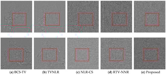 To improve the quality of reconstructed images, another strategy is nonlocal regularization based on nonlocal means (NLM) filtering. This strategy is effective for preserving image details and sharp edges by exploiting structural information. Dong [] proposed a nonlocal low-rank regularization method using a smooth surrogate function for the rank as structured sparsity instead of the convex nuclear norm. This method combines nonlocal self-similarity and low rank to eliminate redundant information and artifacts. However, the reconstructed images are over-smoothed owing to the average tendency of different similar patches.