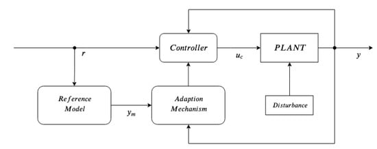 Another improvement of the disadvantages of these controllers leads to MRAC, which will also be used and improved in this work. The scheme can be seen in Figure 2.