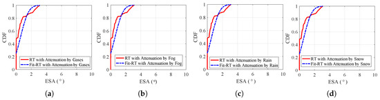 ESA (elevation angular spread of arrival), (a) by Gases; (b) by Fog; (c) by Rain; (d) by Snow.