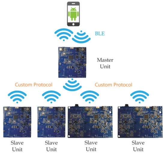 From the networking point of view, for a multi-board acquisition system, we talk about Body Area Networks (BANs) [10], which are networks usually with a star topology and connected by wireless protocols, whose coverage is of the order of 1–2 m [11] (that is, the necessary area to cover the entire body).