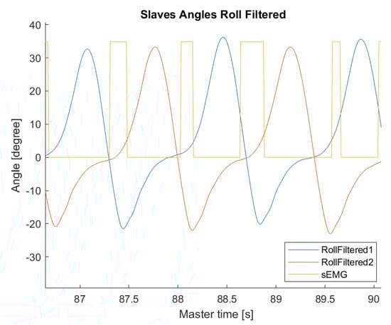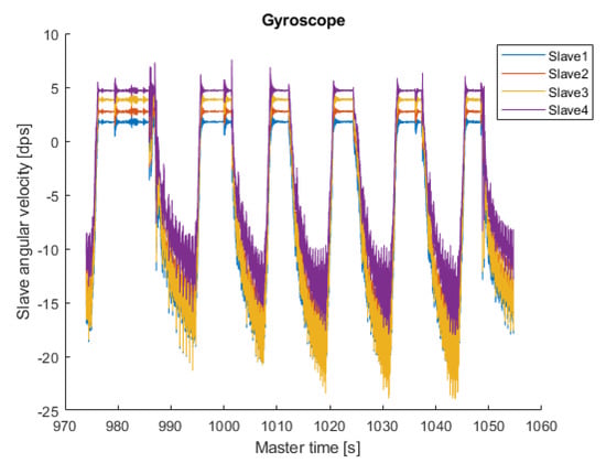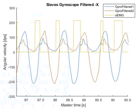 Gyroscope x-axis filtered data for slaves 1 and 2.