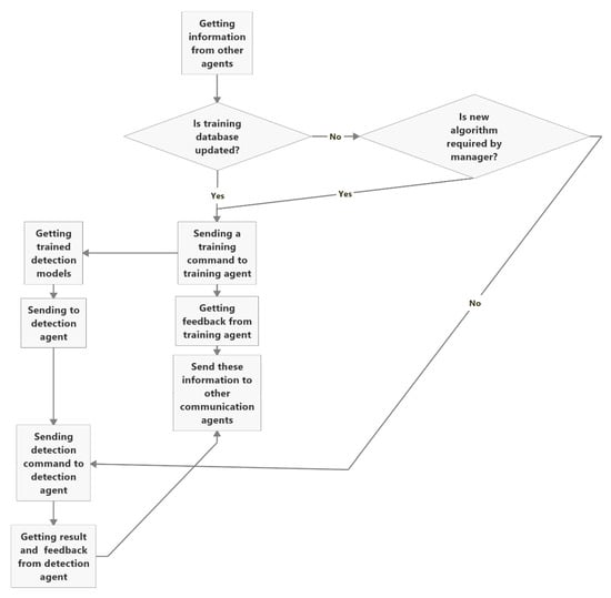 An agent is described as the intelligent behavior of computer software in the fields of artificial intelligence (AI) and computer science. The term “multi-agent” generally refers to MAS or multi-agent technology (MAT). A MAS is a set of multiple agents and it is an extension and application of distributed artificial intelligence (DAI) [35]. Complex systems can be simplified and modularized using a MAS. The agents are responsible for coordination and communication through their respective tasks. Being thoroughly autonomous and form-independent, every agent can be an individual and a cluster in the MAS [24,36,37]. While the agents are developed in different languages and have divergent design patterns, they should use standard communication modes that invokes mutual communication which is not present in a single agent system.