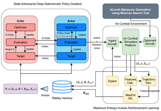 The remainder of this paper is organized as follows. Section 2 explains and defines the aerial combat model based on SA-MDP. Next, the specific theory and techniques for autonomous aerial combat maneuver strategy generation based on SA-DDPG are described in Section 3. A reward shaping method based on MaxEnt IRL is proposed in Section 4. Section 5 details the virtual combat environment and analyzes the performance of the proposed algorithm. This paper is concluded in Section 6. In this study, the UAV piloted by the proposed algorithm, and the target is referred to as the attacker and the target, respectively, for simplicity.