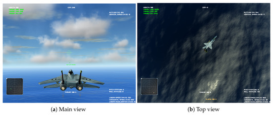 Since the early 1960s, a great deal of research has been done on autonomous aerial combat, and some remarkable research results have been published. The problem of aerial combat is modeled as pursuit-evasion games [4,5,6], and various theoretical and optimal control schemes provide solutions for autonomous aerial combat. Using differential game theory [7], the aerial combat model is modeled as a deterministic, complete information pursuer-evader game model. In Reference [8], approximate dynamic programming (ADP), a real-time autonomous one-to-one aerial combat method, was studied, and the results were tested in real-time indoor autonomous vehicle test environments (RAVEN). ADP differs from classical dynamic programming in that it constructs a continuous function to approximate future returns. ADP does not need to perform future reward calculations for each discrete state. Therefore, its real-time performance is reliable. A more complex two-on-one combat was treated as a differential game in three-dimensional space [9]. These theoretical approaches make possible the mathematical interpretation of the problem of aerial combat. However, they may include oversimplified assumptions, such as fixed roles or two-dimensional motion, to reduce complexity and computational time.