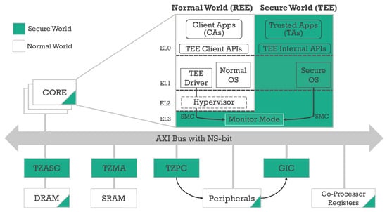 - Santos, N.; Fonseca, P. SoK: Understanding the Prevailing Security Vulnerabilities in TrustZone-assisted TEE Systems. In Proceedings of the IEEE Symposium on Security and Privacy (S&P), San Francisco, CA, USA, 18–20 May 2020. [Google Scholar]