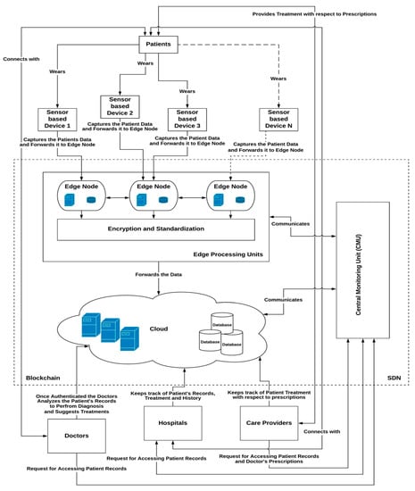 - Manogaran, G.; Varatharajan, R.; Lopez, D.; Kumar, P.M.; Sundarasekar, R.; Thota, C. A new architecture of Internet of Things and big data ecosystem for secured smart healthcare monitoring and alerting system. Future Gener. Comput. Syst. 2018, 82, 375–387. [Google Scholar] [CrossRef]
