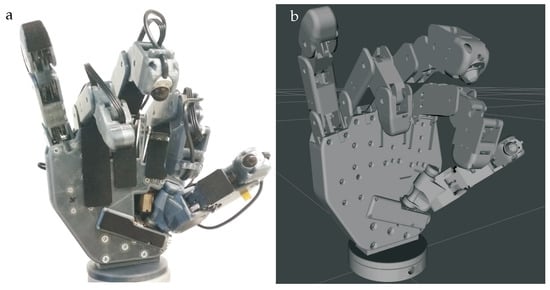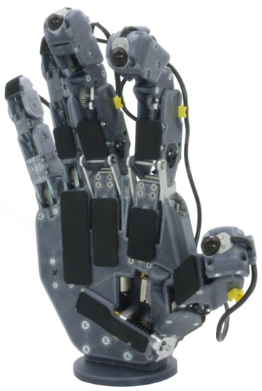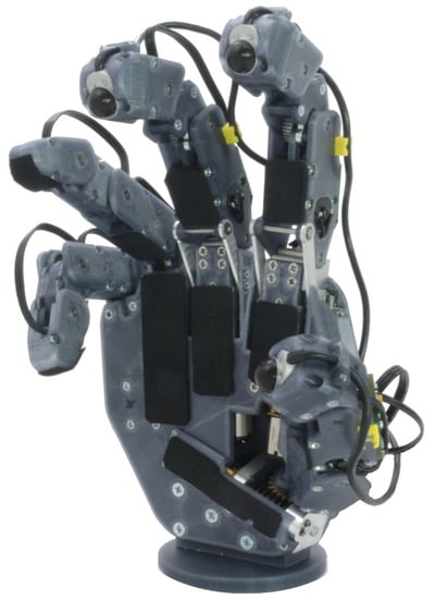 - Xu, Z.; Kumar, V.; Todorov, E. A Low-cost and Modular, 20-DOF Anthropomorphic Robotic Hand: Design, Actuation and Modeling. In Proceedings of the 2013 13th IEEE-RAS International Conference on Humanoid Robots (Humanoids), Atlanta, GA, USA, 15–17 October 2013; pp. 368–375. [Google Scholar]