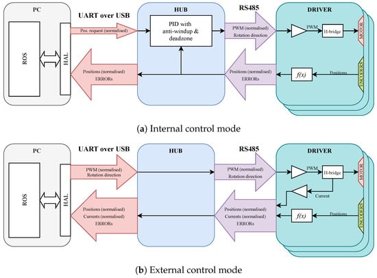 Figure 12. Internal control mode. - External—in this mode HUB acts as a middleman between external user implemented controller and particular drives, providing information about DRIVERs status and forwarding PWM duty. A diagram of external control mode is presented in Figure 12b.