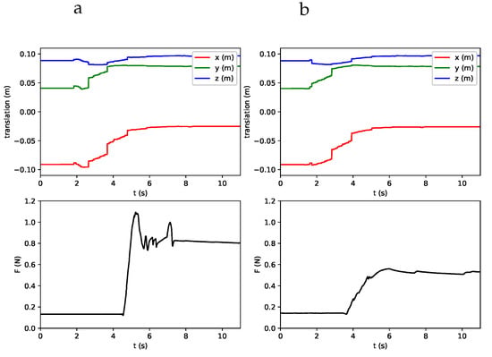 Figure 21a presents reaction force predicted using a model in Figure 23 and those measured during the experiment of plug insertion. The module of the reaction force in Figure 21a is obtained from the forces measured at the thumb tip and the index finger tip :