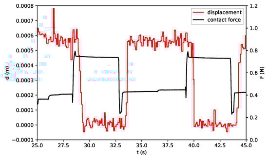 The measured angle and spring constant k is equal to and 800 , respectively. Then, we estimated the friction coefficient to fit the model to the data obtained during the experiment.