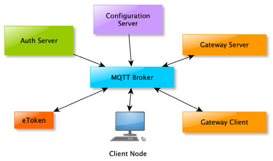 Figure 2. Message Queuing Telemetry Transport (MQTT) interconnects all the elements. - Configuration server (CS): the only server authorised to manage any configuration in the system;