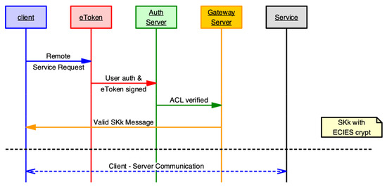 The system separates the authentication service from the system being accessed, as Kerberos does, although in our proposal, we do not need time stamps and the authentication is based on public key algorithms. In general, other authentication systems require direct access from client to authentication servers, but in our scheme, communications go through the MQTT broker, which avoids direct connections facilitating global connectivity among all the elements.