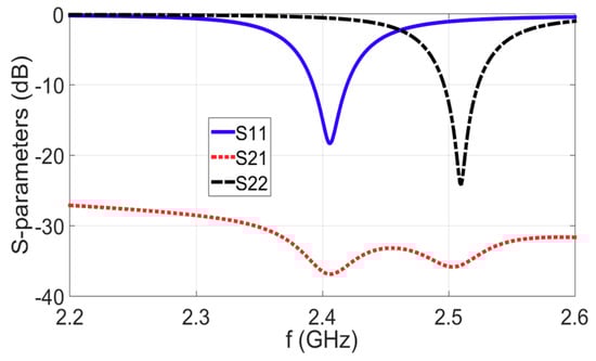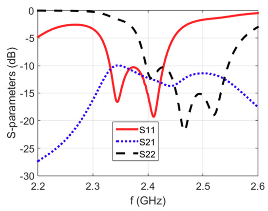 S-parameters of well-matched Case 4 (Switch 1 and 2 On).