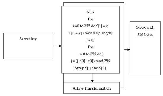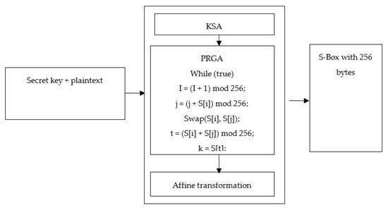 The S-Box uses two main elements of the RC4 encryption algorithm; particularly the KSA and PRGA. This leads to a robust S-Box and so performs the affine transformation of the produced value, to come up with a brand-new S-Box with 256 bytes. It is used with additional confusion and permutation that guarantee additional security against attacks [