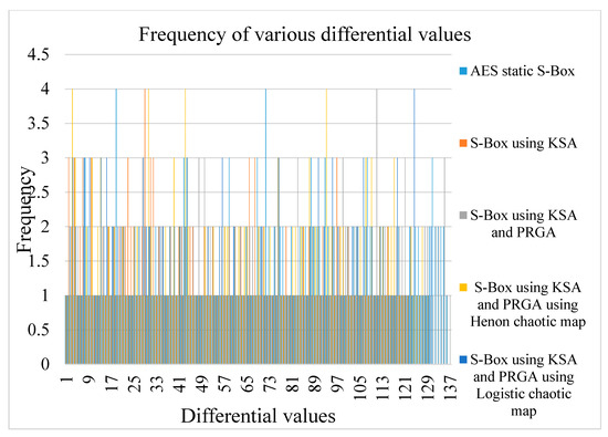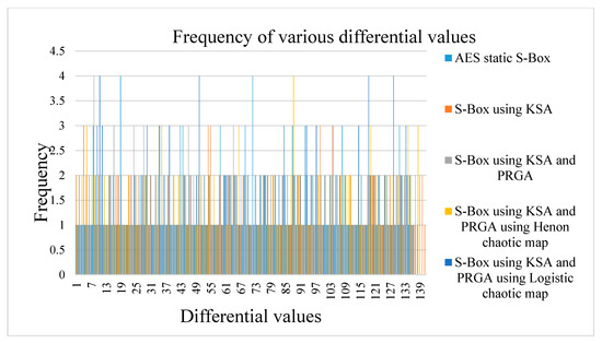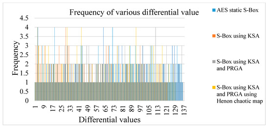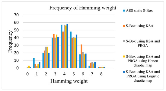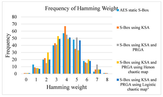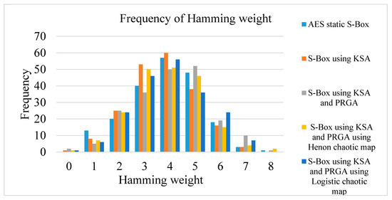 17] used different ways to measure the Strict Avalanche Criteria (SAC) numerically. However, in our paper, three investigation techniques are utilized to measure the SAC: examination of the frequency of various Hamming weights, investigation of the frequency of various differential values, and investigation of Hamming weights as per the bit position.