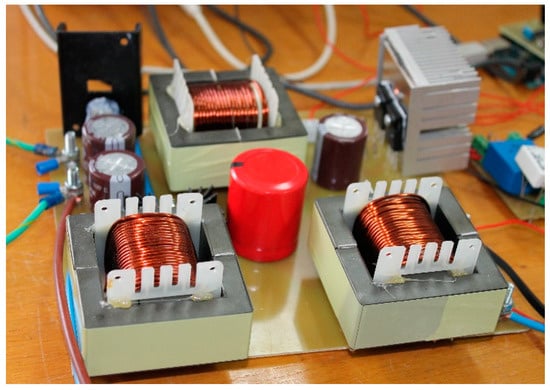 An experimental prototype of the proposed DC-DC converter has been designed, based on the circuit shown in Figure 3. The prototype is a scaled model that allows the verification of its operation in the laboratory. Figure 6 shows the experimental prototype.
