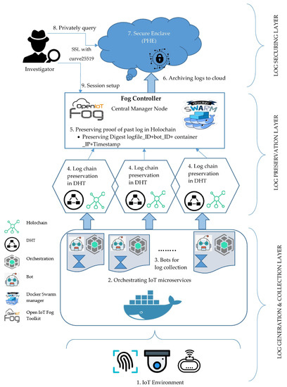 - Proof of past log (PPL) preservation at fog level via Holochain: Preserving log integrity, privacy, provenance trust admissibility via Holochain distributed network instead of blockchain which is a more power-consuming approach.
