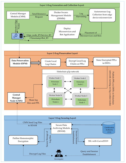 - Initiate the Data Preservation Module (DPM) for log preservation at fog worker nodes via Holochain and send all the Proof of Past Logs (PPL) to the central manager node.