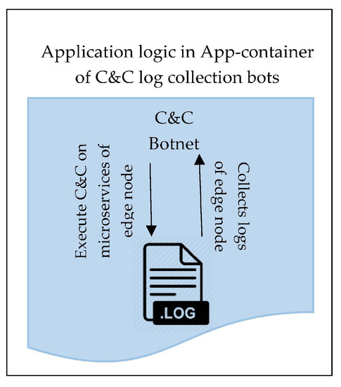 DSMM deploys the C&C bots besides the microservice in the container of edge device running on the fog worker node. To collect the log from IoT microservice, bots gather the stored logs in a specific directory provided on edge device microservice application. Logs are kept in storage in a predefined format along with the service information for forensics. Equation (1) provides the digest of information format harvested in the microservice of the edge device. These bots are assigned with nonce identifiers so that the corresponding logs must be identified separately. This will also be useful in making information digest during the log preservation chain. Figure 10 provides the inside view of bots working in containers along with microservices.