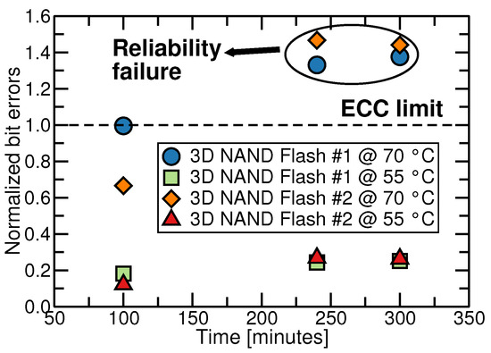 - Cai, Y.; Luo, Y.; Haratsch, E.F.; Mai, K.; Mutlu, O. Data retention in MLC NAND flash memory: Characterization, optimization, and recovery. In Proceedings of the 2015 IEEE 21st International Symposium on High Performance Computer Architecture (HPCA), Burlingame, CA, USA, 7–11 February 2015; pp. 551–563. [Google Scholar] [CrossRef]