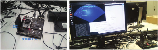 Figure 15 shows the hardware configuration and the object detector at work. Using the target hardware with GPU, the detection time was reduced from 1.3 s per image to 0.52 s, which is almost a 57% improvement.